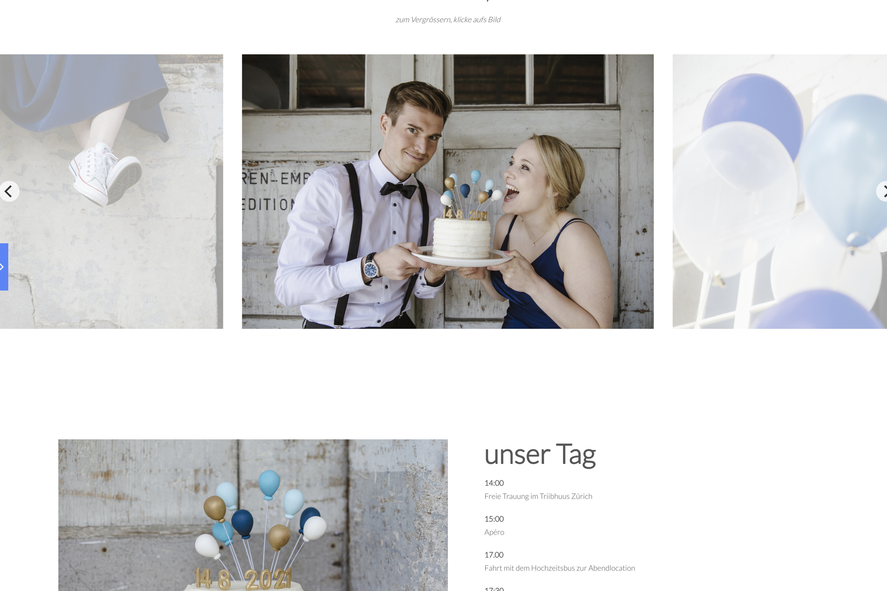 Möchtet ihr eure Gäste auf schöne Art einladen und auf dem Laufenden halten? Eine Hochzeits-Webseite ist ideal, um alle Infos attraktiv verpackt und zentral abzulegen. Änderungen können ausserdem sehr schnell vorgenommen werden. Bei Reportagen ab 7h ist die Webseite inklusive.